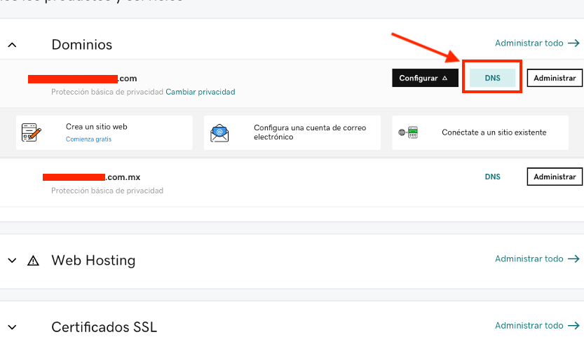 - Accede al panel de control de tu proveedor de dominio y busca la opción «Gestión de DNS».